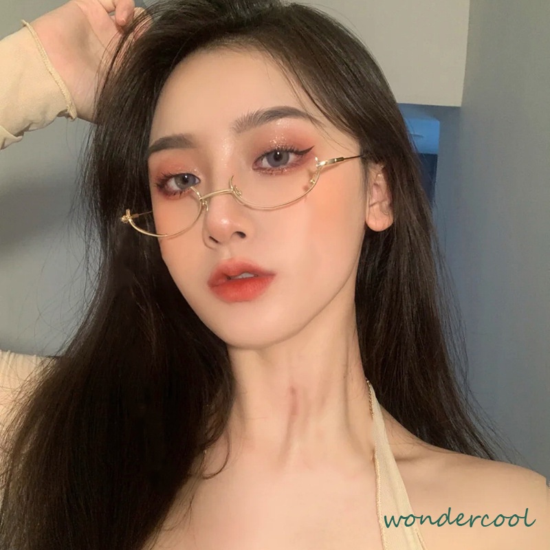 Detail Kacamata Setengah Bingkai Gadis Korea | Bingkai Kacamata Datar Wanita Dekorasi COSPLAY-Won