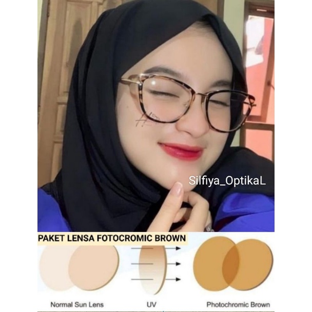 Kacamata fashion untuk mempercantik tampilan ootd kalian setiap hari dengan Lensa photobrown ( berubah warna coklat ) ,bila di bawah sinar matahari
