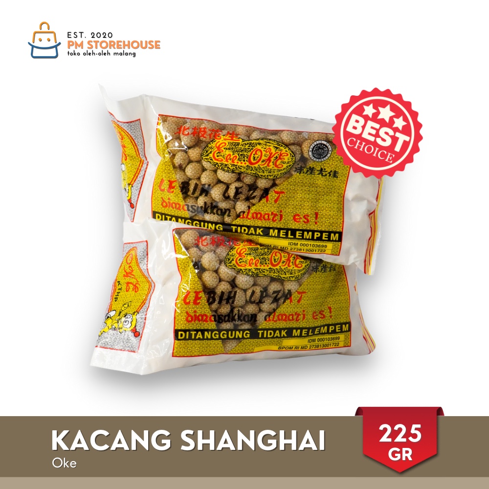 Kacang Shanghai Oke Asli Malang diproduksi dengan menggunakan bahan-bahan pilihan yang berkualitas dan bebas bahan pengawet. Kacang yang digunakan dipilih dengan cermat dan diolah dengan teknik khusus sehingga menghasilkan tekstur yang renyah dan tidak melempem, serta tidak memiliki rasa pahit yang mengganggu.