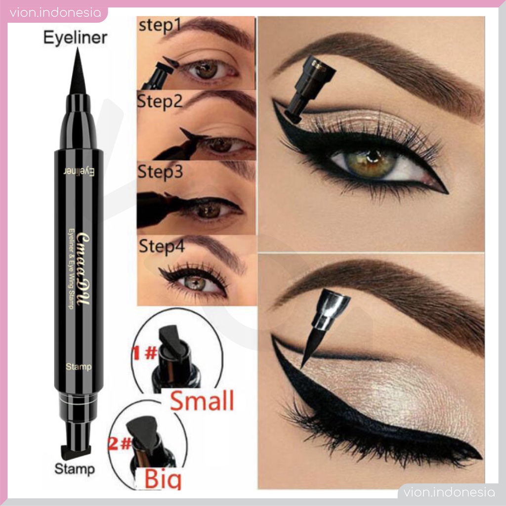 Detail KACHI - CMAADU Eyeliner Stamp 2 in 1 Wing Spidol Liquid Waterproof 2 In 1 Pencil Pensil Celak MINIPINK FITCOLORS CM001