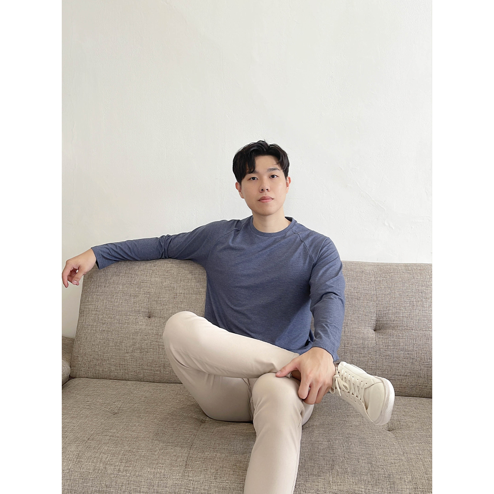 MT-0103 Kaos Long Sleeve Tangan Panjang Pria Basic Corak Two Tone Stretch Comfortable