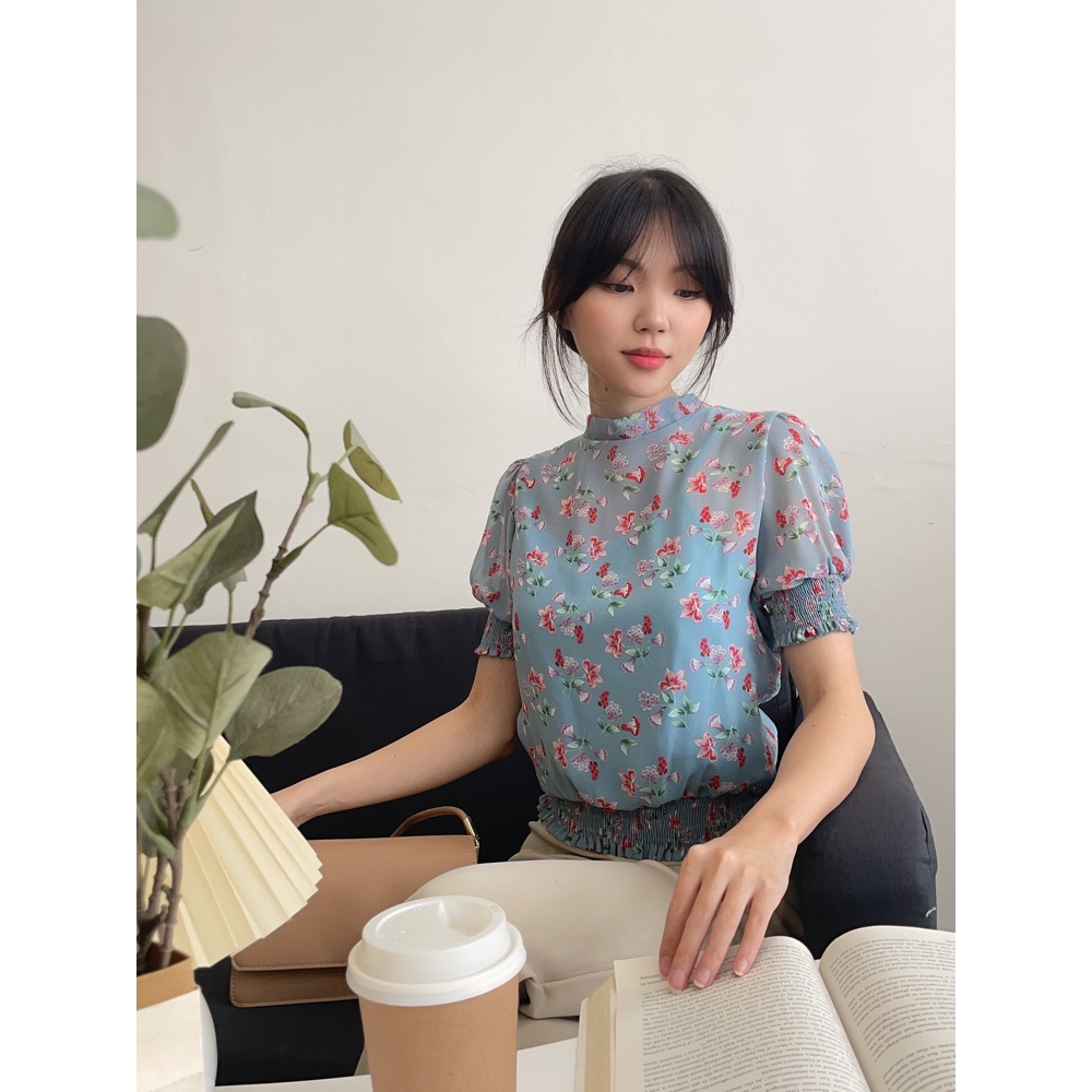 Kadaka T-0442 Top Floral Blouse Atasan Cantik Wanita Bunga Mock NeckKadaka T-0442 Top Floral Blouse Atasan Cantik Wanita Bunga Mock Neck