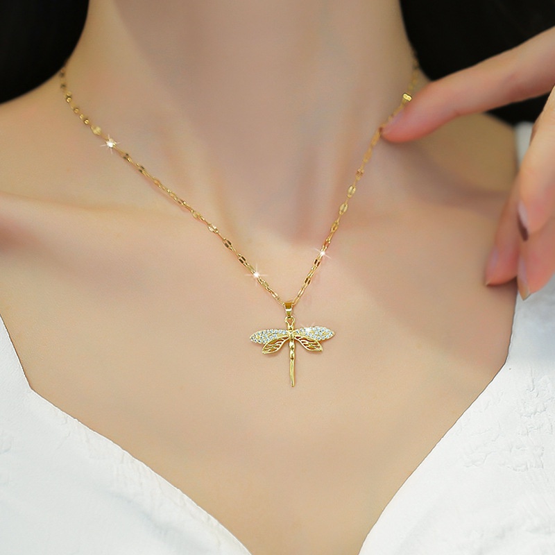 Detail Kadar Tinggi Baru Indah Fashion Wanita Korea Zirkon Capung Liontin Emas Asli Kadar 375 Kalung Hadiah Pacar XL-23028