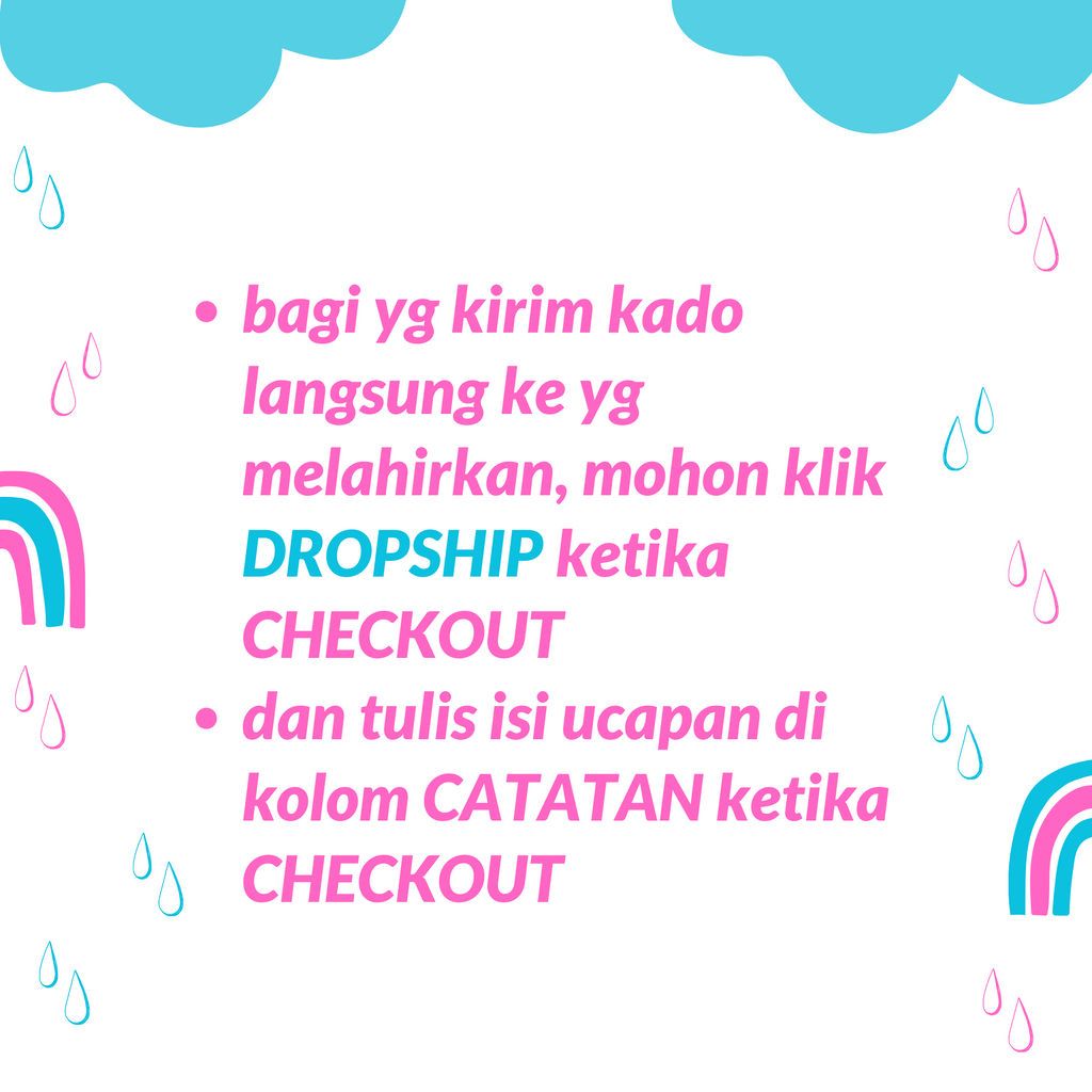 FREE Tas Kado dan Kartu Ucapan. - JENIS tas bisa dipilih - WARNA tas tidak bisa dipilih (kami usahakan warna senada) - Kartu ucapan bisa KOSONGAN atau kami bantu TULISKAN. - jika dituliskan, silahkan ketik di CATATAN atau di kolom CHAT.