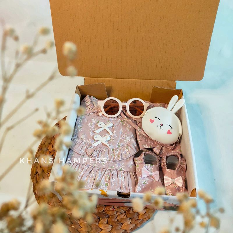 🎀Isi hampers (FREY ) 0-9 Bulan - Baju cantik bahan katun jepang 100% lembut -Bandan -Booties motif -Kacamata UV Size Baby Frey: disesuaikan dengan size detail dede ya moms :) Lebar dada 22-23cm, panjang sampai slngkangan 38-39cm