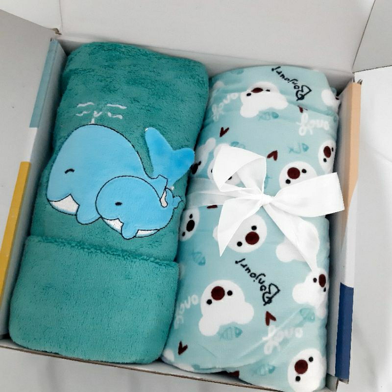 HAMPERS BAYI NEWBORN SET HANDUK DAN SELIMUT BAYI KADO LAHIRAN SELIMUT DOUBLE FLECEE