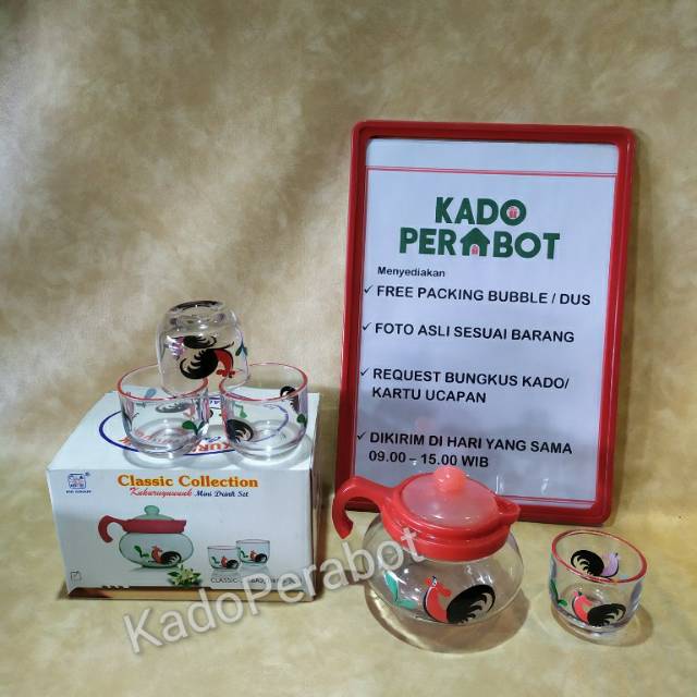 Mini drink set Classic collection Motif ayam 1 set isi 5 4pcs gelas 5.5*5cm 1pcs teko 10*10cm Bahan kaca tebal KIG production