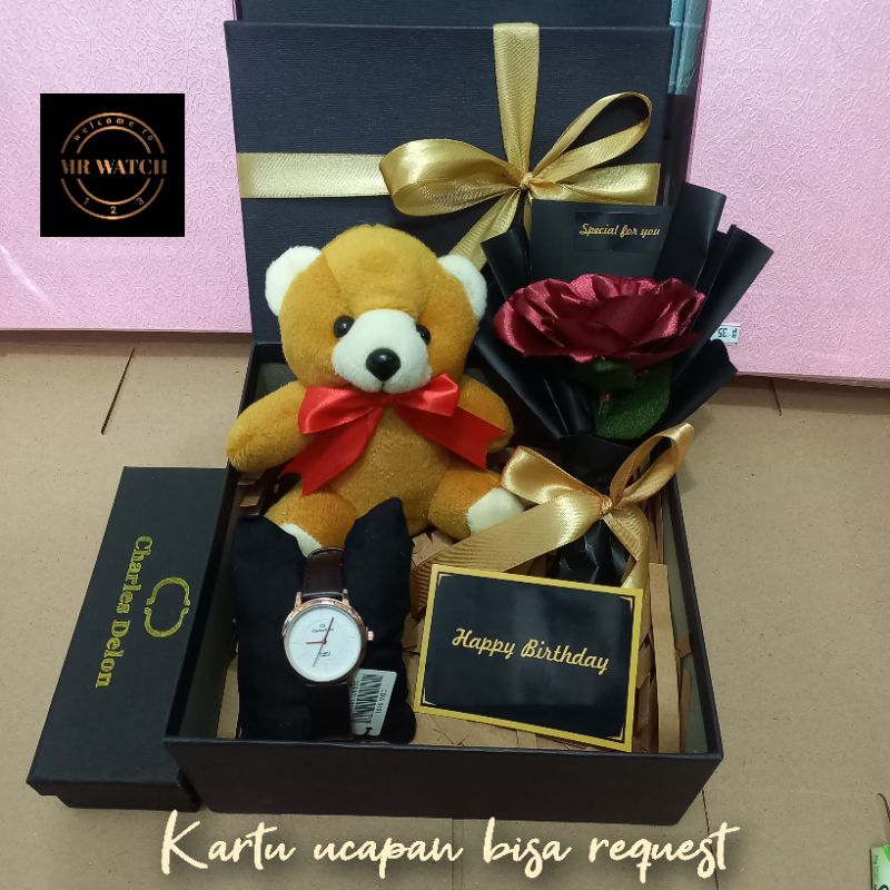 * KETERANGAN PAKET : - JAM TANGAN ORIGINAL PLUS BOX NYA - BONEKA TEDDY UKURAN -+ 12CM - BUCKET BUNGA MAWAR BAHAN SATIN MEWAH - KARTU UCAPAN ( BISA REQUEST) - BOX LUAR ADA 2 MACAM 1. BOX BIASA (LIHAT GAMBAR DIATAS) 2 HARD BOX (LIHAT GAMBAR DI ATAS) SILAHKAN PILIH BOX NYA DI VARIASI PRODUK