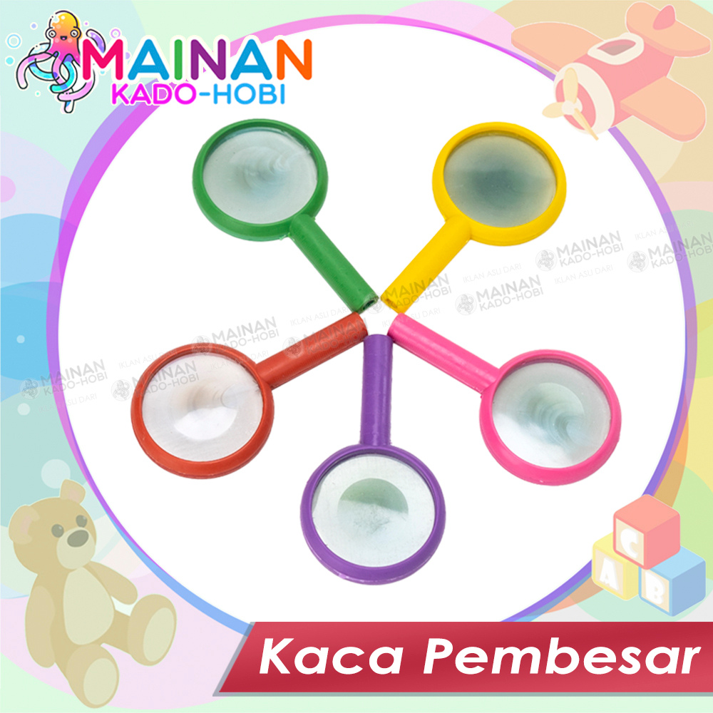 Mainan kaca pembesar mini digunakan untuk melihat benda kecil menjadi besar. Dapat dijadikan sebagai hadiah ulang tahun anak. Melatih sensorik dan motorik anak. Terbuat dari bahan dasar plastik yang aman untuk anak-anak.