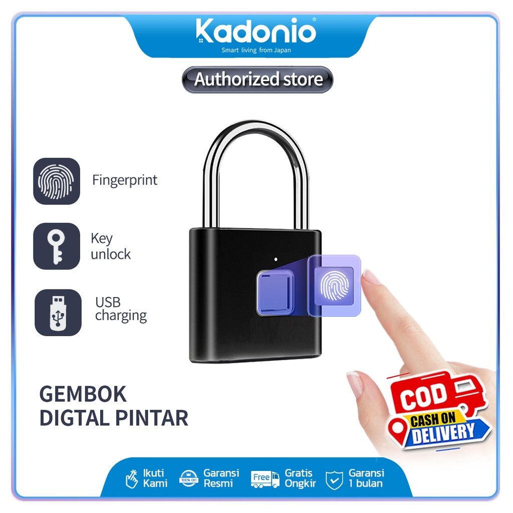 Detail Kadonio kunci gembok sidik jari Smart Fingerprint Padlock Security gembok pagar pintu anti maling kunci gembok pintu