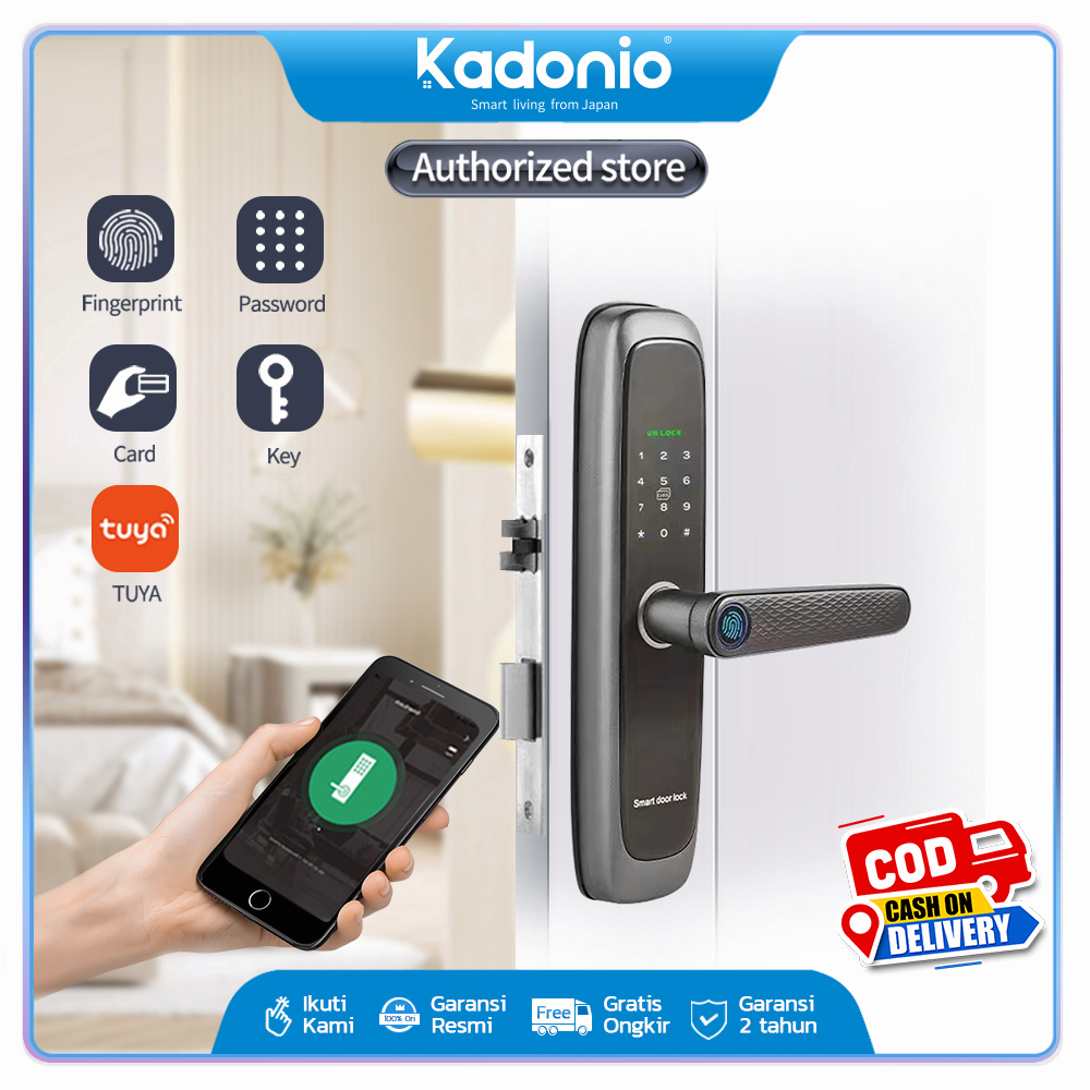 Perlengkapan Rumah > Alat Pengaman > Perangkat Pintu & Gembok > Kadonio kunci pintu elektrik Kunci Pintu handle kunci pintu Sidik Jari Password kunci pintar Kontrol App smart door lock