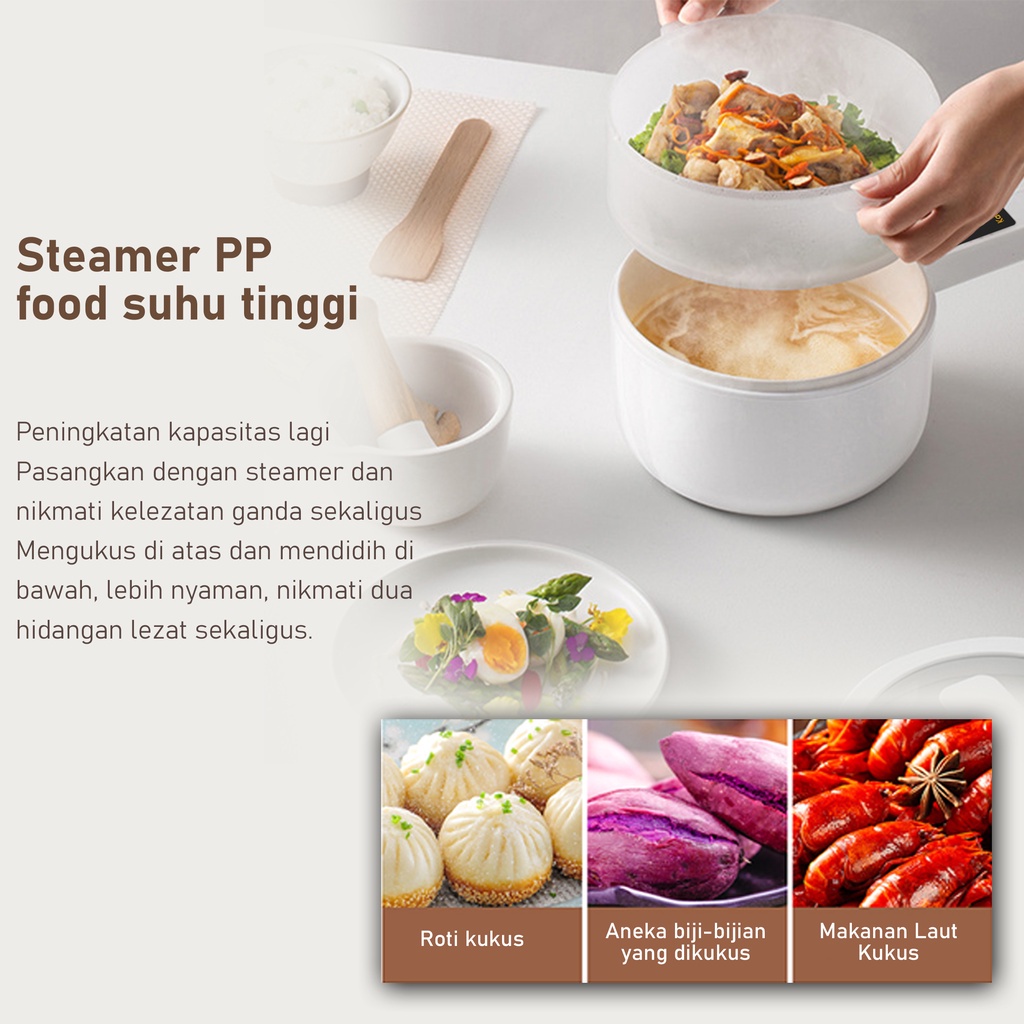 Pot Masak Nyaman Multi-Fungsi Serbaguna dalam satu pot Lapisan anti lengket Panaskan secara merata Liner nano porselen putih:merebus dan bilas/wajan anti lengket/menggoreng di panci/menggoreng/mengaduk dan goreng /masak bubur/memasak nasi/sup rebusan/panci panas/penggorengan Pemanasan melingkar konduksi cepat Mudah untuk dibersihkan konduksi panas yang cepat tahan suhu tinggi Perlindungan keamanan ganda secara otomatis memutus daya saat suhu berlebih atau pemanasan kering Disain pegangan panjang----Mencegah luka bakar dan mudah dipegang tinggalkan lebih banyak ruang untuk dipegang Peningkatan kapasitas lagi----Steamer PP food grade suhu tinggi lebih mudah untuk mengukus dan memasak, dan menerima makanan lezat ganda pada saat yang bersamaan Dalam mode panci panas, daya api bisa disesuaikan.Dalam mode yang lain, tombol penyesuaian untuk mengontrol lama waktu