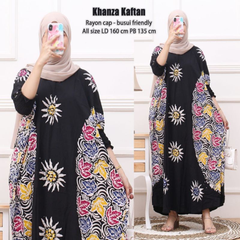 Detail Kaftan Jumbo Abstrak Rayon Premium Busui Resleting Depan LD 150 Bumil Homedress Kekinian Terbaru Termurah