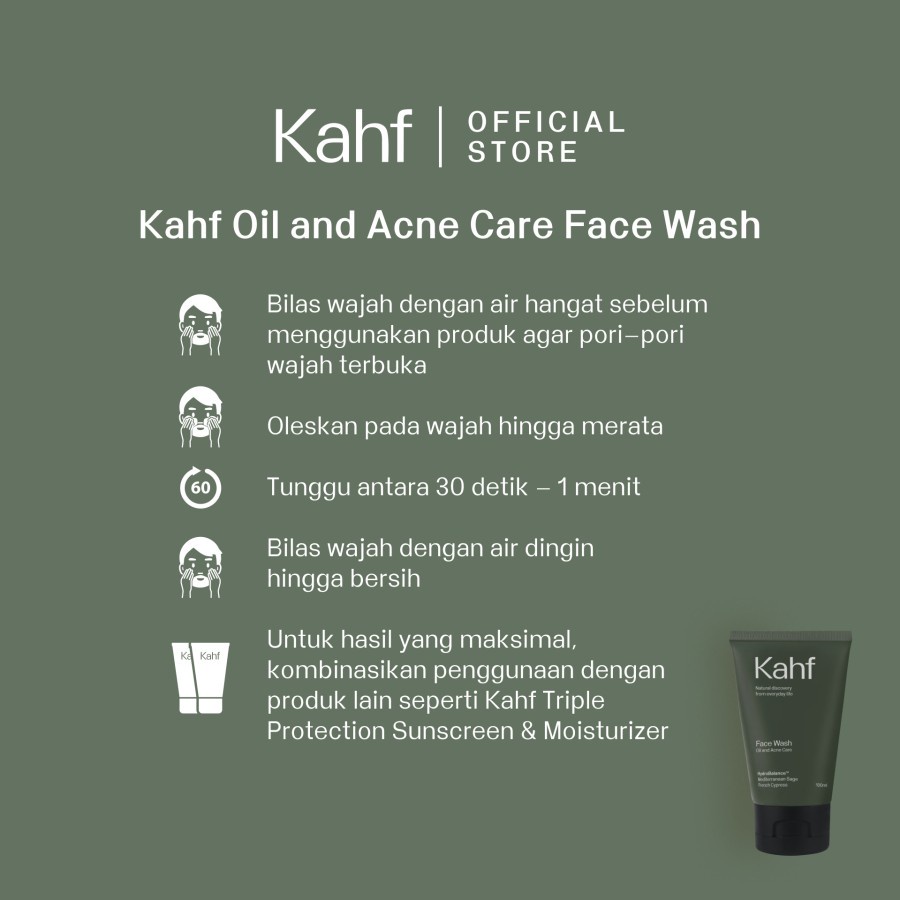 π URUTAN PAKAI 1. Face Wash (2x sehari, pagi & malam) 2. Kahf Face Toner (2x sehari, pagi & malam) 3. Kahf Face Serum (2x sehari, pagi & malam) 4. Kahf Sunscreen Moisturizer (pakai pagi hari kemudian reapply setiap 2-3 jam sekali jika diperlukan)