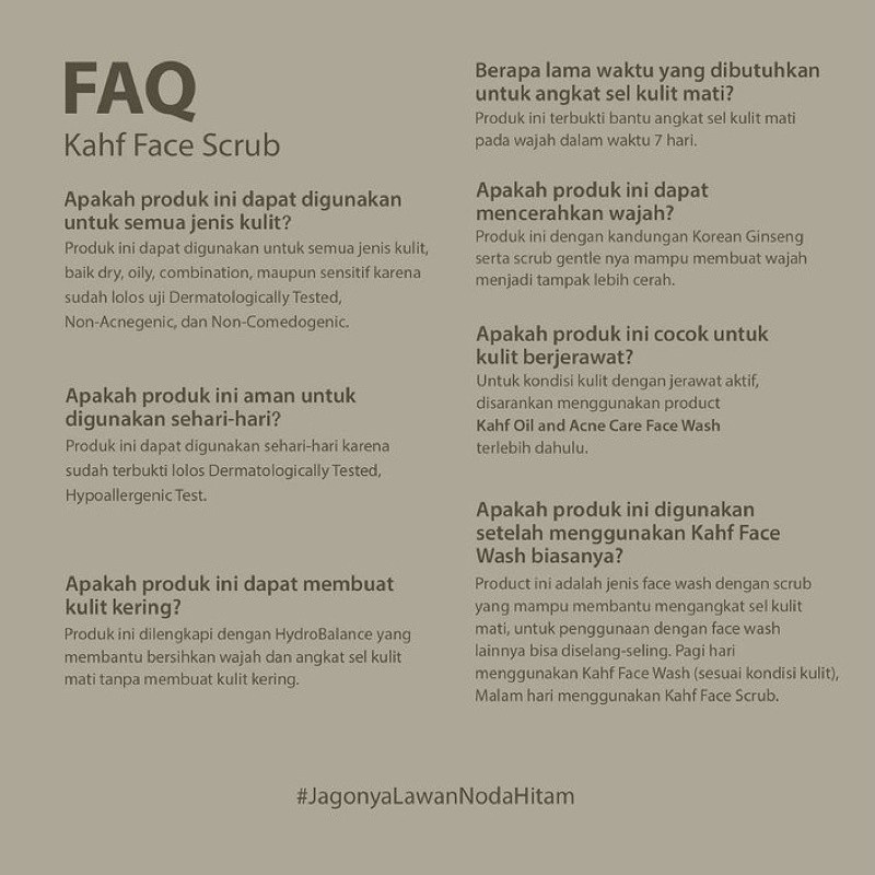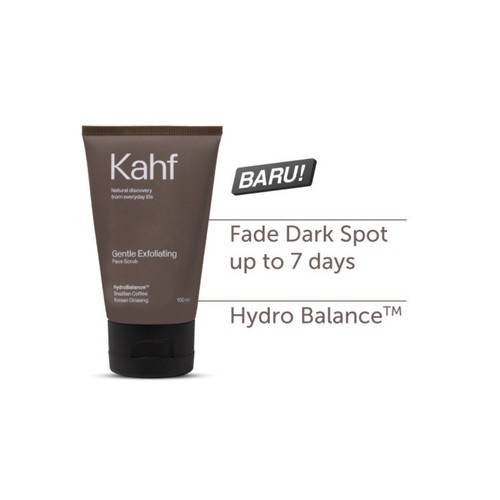 Kahf Gentle Exfoliating Face Scrub merupakan sabun cuci muka khusus pria yang mengandung ekstrak Korean Ginseng dan Brazillian Coffee yang membantu menyamarkan pori-pori membesar dan noda hitam, serta membuat wajah lebih cerah dalam 7 hari. Mampu mengangkat sel kulit mati tanpa membuat kulit kehilangan kelembapannya .