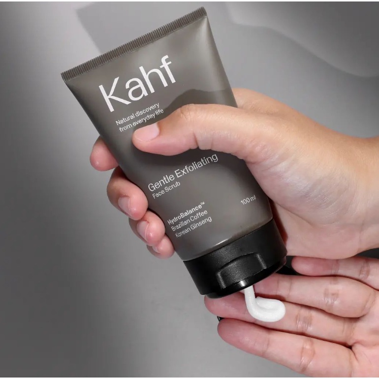 Kahf Gentle Exfoliating Face Scrub merupakan sabun cuci muka khusus pria yang mengandung ekstrak Korean Ginseng dan Brazillian Coffee yang membantu menyamarkan pori-pori membesar dan noda hitam, serta membuat wajah lebih cerah dalam 7 hari. Mampu mengangkat sel kulit mati tanpa membuat kulit kehilangan kelembapannya .