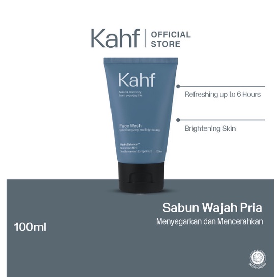 Kahf Skin Energizing and Brightening Face Wash 100 ml Merupakan sabun pembersih wajah dengan kombinasi HydroBalanceTM dan Pure Cleanse yang dapat menjadikan kulit wajah bersih dan lembap secara menyeluruh hingga ke pori-pori. Diperkaya dengan ekstrak Moroccan Mint dan Mediterranean Grapefruit menjadikan kulit terasa lebih segar dan tampak lebih cerah dengan formula yang ringan sehingga cocok untuk semua jenis kulit.