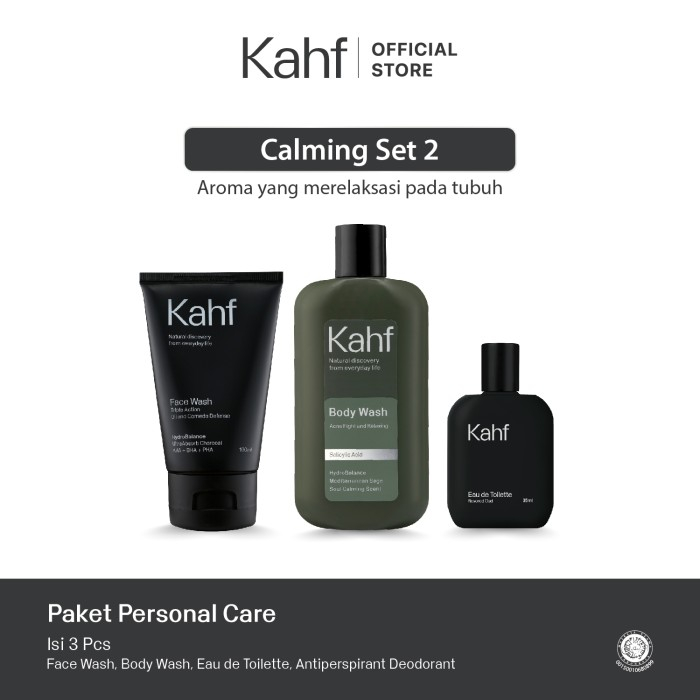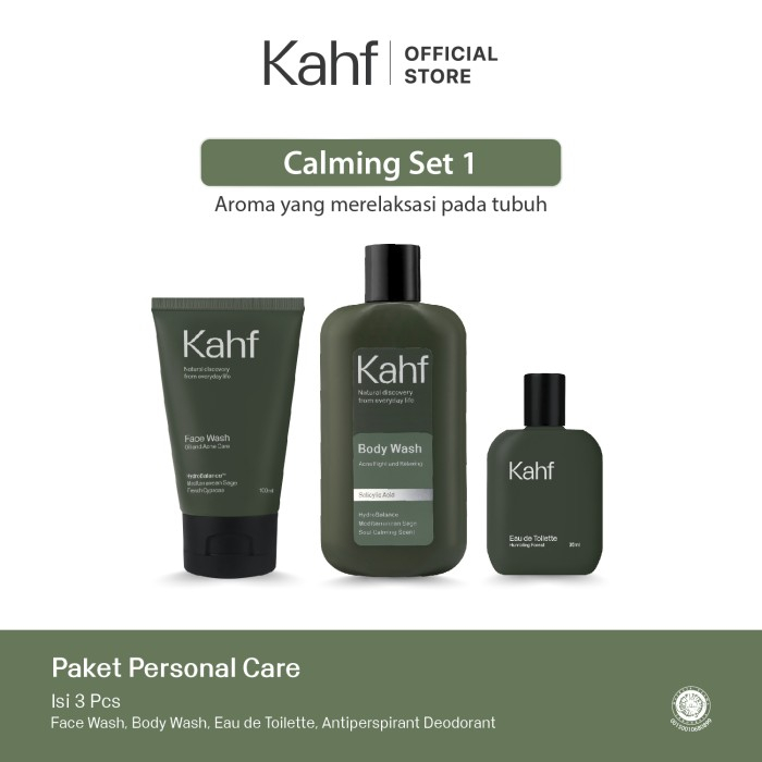 Varian Calming Set 1: Kahf Oil and Acne Care Face Wash 100 ml Kahf Acne Fight and Relaxing Body Wash 200 ml Kahf Humbling Forest Eau de Toilette 35 ml
