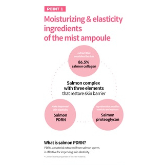 💖Feature ✔ Spraying collagen Effects of improving wrinkles on forehead, forehead, smile, and eyes ✔ Salmon collagen that nourishes the wrinkles ✔ Salmon PDRN increases skin elasticity ✔ Salmon proteoglycan to fill the wrinkles with moisture ✔ 86.5% collagen extract