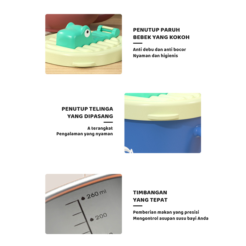 🤱Keganjilan: 1. Tangki bagian dalam cangkir dapat dilepas, nyaman dan cepat dibersihkan, tidak perlu khawatir residu bakteri, dan air minum lebih aman 2. Skalanya jelas dan cukup jelas. Cangkir memiliki skala bawaan, yang secara akurat dapat mengontrol jumlah asupan air, dan mengatur air minum secara wajar setiap hari. 3. Disegel dan dikunci, terbalik tidak mudah tumpah, jangan khawatir kebocoran air, bisa diletakkan sesuka hati, jangan khawatir mewarnai pakaian atau sofa basah 4. Desain insulasi panas ganda, jangan khawatir membakar tangan kecil bayi, air minum lebih aman 5. Sedotan mengadopsi silikon food grade. Tidak beracun dan tidak berbahaya, untuk memastikan pertumbuhan bayi yang sehat.