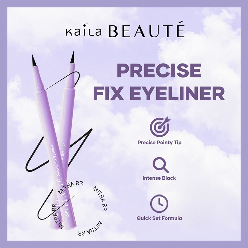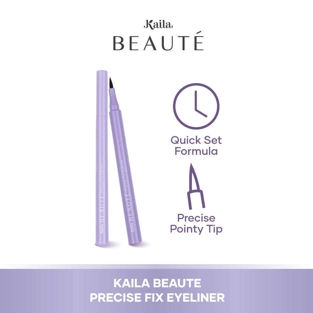 Kaila Beaute Precise Fix Eyeliner adalah eyeliner dengan warna hitam pekat, formula yang cepat kering setelah diaplikasikan, dan ujung kuas runcing untuk memberikan hasil yang presisi.