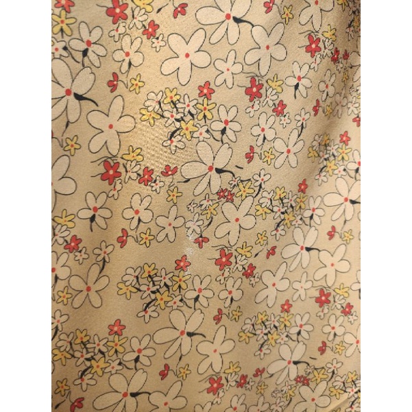 Bahanya bagus kualitasnya baik. Adem di kulit dan tidak gatal di kulit dan bunga cantik bangett cocok bangett kalu di buat dressss dll yukkkkkkk buruaaannnnn sebelum kehabisan loh kak