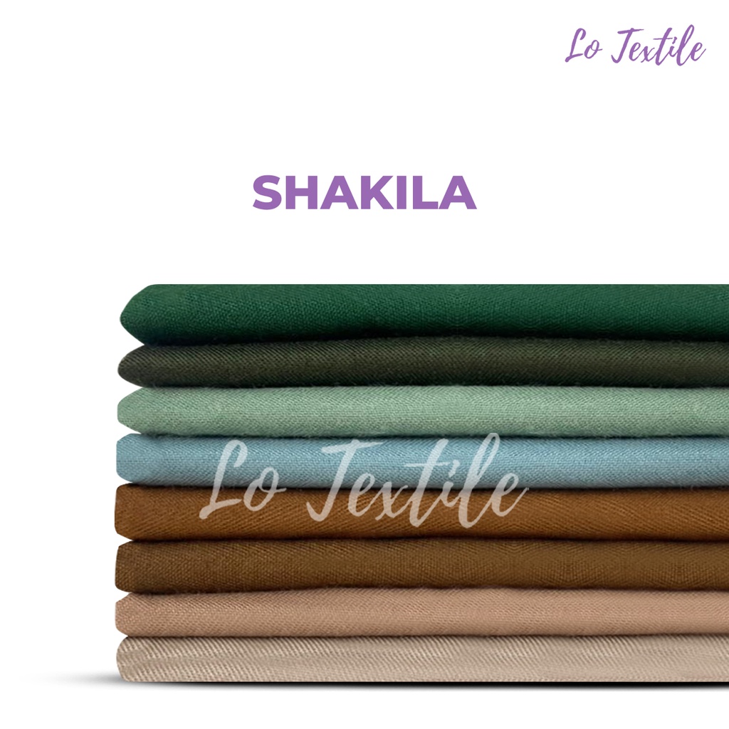 Karakteristik Shakila: Bertekstur salur, ketebalan tinggi, tidak menerawang, elastis jika ditarik secara diagonal (searah dengan serat kain), tidak panas saat dipakai, menyerap keringat Rekomendasi Penggunaan : Gamis, Tunik, Blouse, Kemeja, Rok, Kulot ,DLL