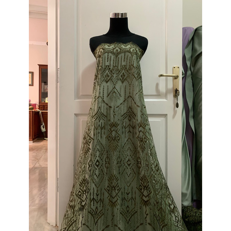 Pakaian Wanita > Kain > Kebaya > Kain Brokat Bahan Kebaya Tile Bordir Mewah Etnic Madeline Warna Hijau Lumut Army