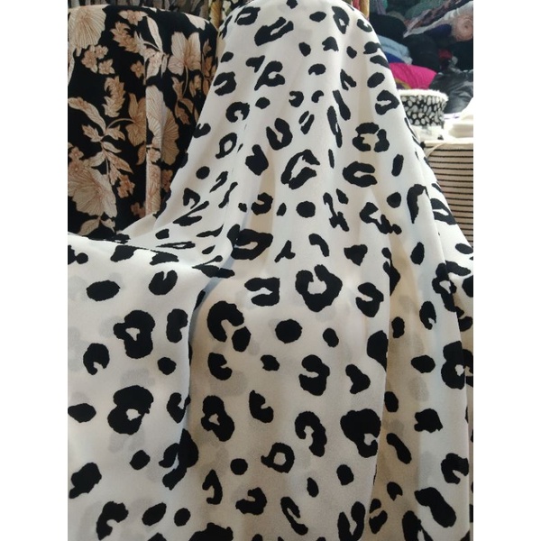 Jenis bahan : ceruty cleopard Lebar : 150 cm Tekstur : β Kain tembus pandang β bahan jatuh licinβ bahan import