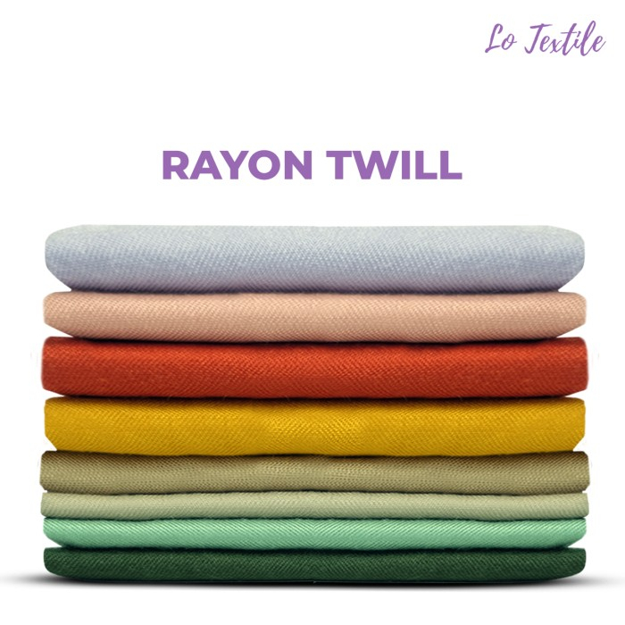 Karakteristik Rayon Twill : Tekstur Lembut, Tebal, Jatuh, Ringan, Adem, Tidak menerawang, Tidak Licin, Bergaris Diagonal, Menyerap Keringat,Empuk , Nyaman.