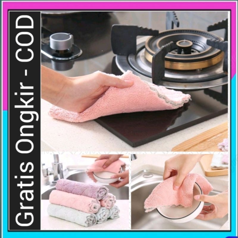 Kain ini terbuat dari microfiber aman untuk digunakan, kain ini di desain berlapis ganda,lembut untuk di sentuh dan kuat dalam penyerapan air Sangat cocok untuk membersihkan mangkok, kompor, dll Ukuran : +/- 28*17cm