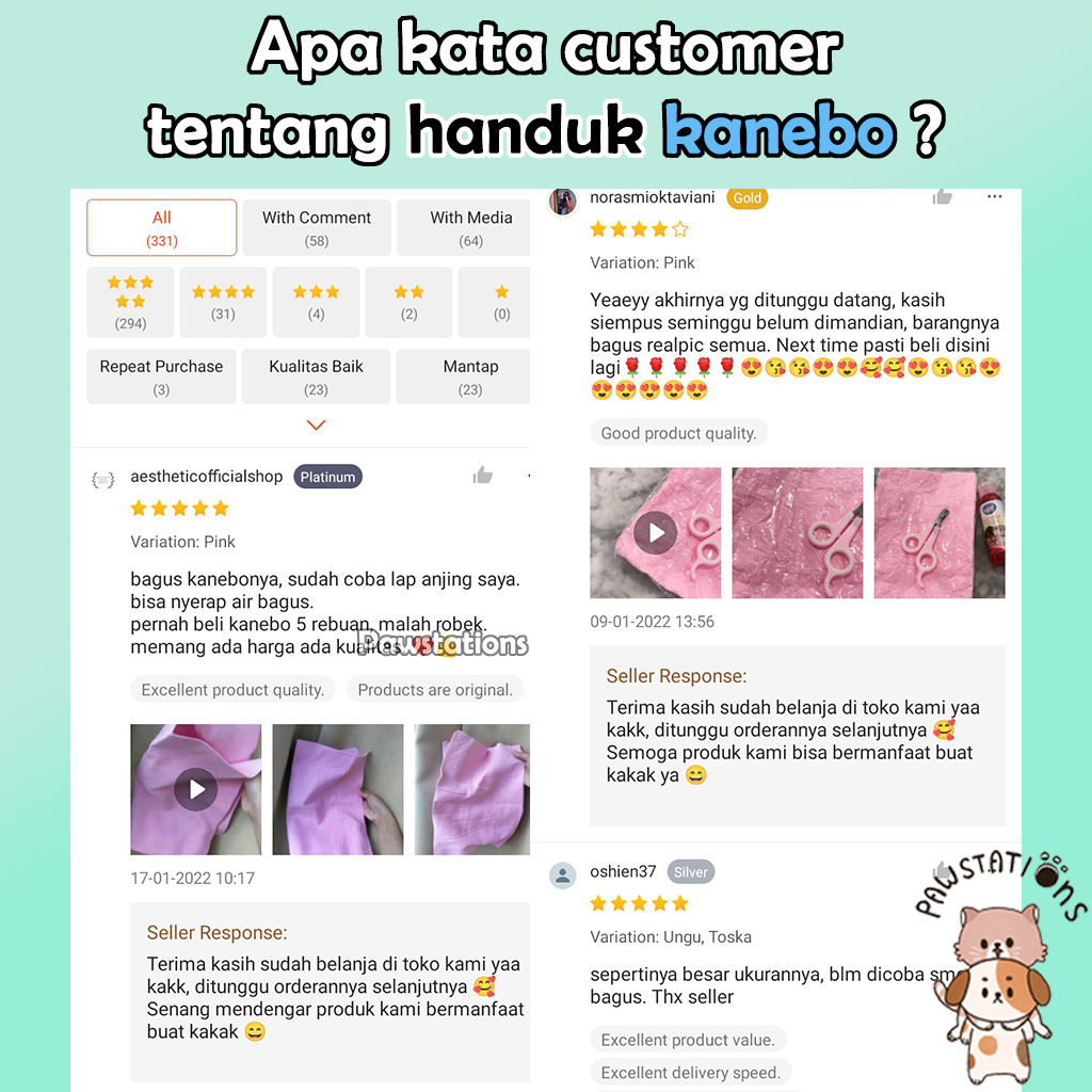 Keunggulan produk: - Relatif tebal. Sekitar 0.2 cm - Jumbo! Ukuran sekitar 43 cm x 32 cm (Toleransi sekitar 0.5 cm dr tiap produknya ya, kadang datang dr pabrik ada yg beda) - Daya serap tinggi. Efektif menyerap air setelah memandikan anjing dan kucing. - Bahannya lembuh, tebal, dan kuat. - Awet & tahan lama utk digunakan - Setelah digunakan, bilas dengan bersih lalu masukkan kembali ke tempat tertutup. - Multipurpose alias multifungsi. Bisa juga digunakan sebagai lap pembersih: dapur, motor, mobil, furniture, mainan anak, lap lantai, dll. Utk kanebo yang dijadikan pet towl harap bedakan dgn yg digunakan utk lap pembersih ya... (Cat Lover jadi bisa beli dan punya lebih dari 1 pcs supaya kanebo utk pet towel tetap higienis) - Bahan halus. Tidak menggores. - Lebih mudah menyerap air dibandingkan handuk bisa.
