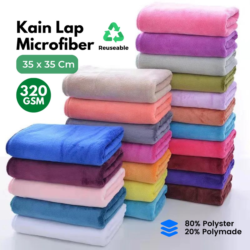 Kain Lap Microfiber 30 x 30 (300 GSM), 30 x 30 (320 GSM). 35 x 35 (320 GSM) Serbaguna Kanebo Otomotif Rumah Tangga