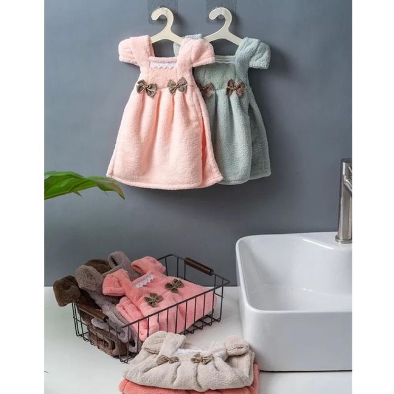 Detail kain lap tangan model baju 2 pita free hanger serbet baju import
