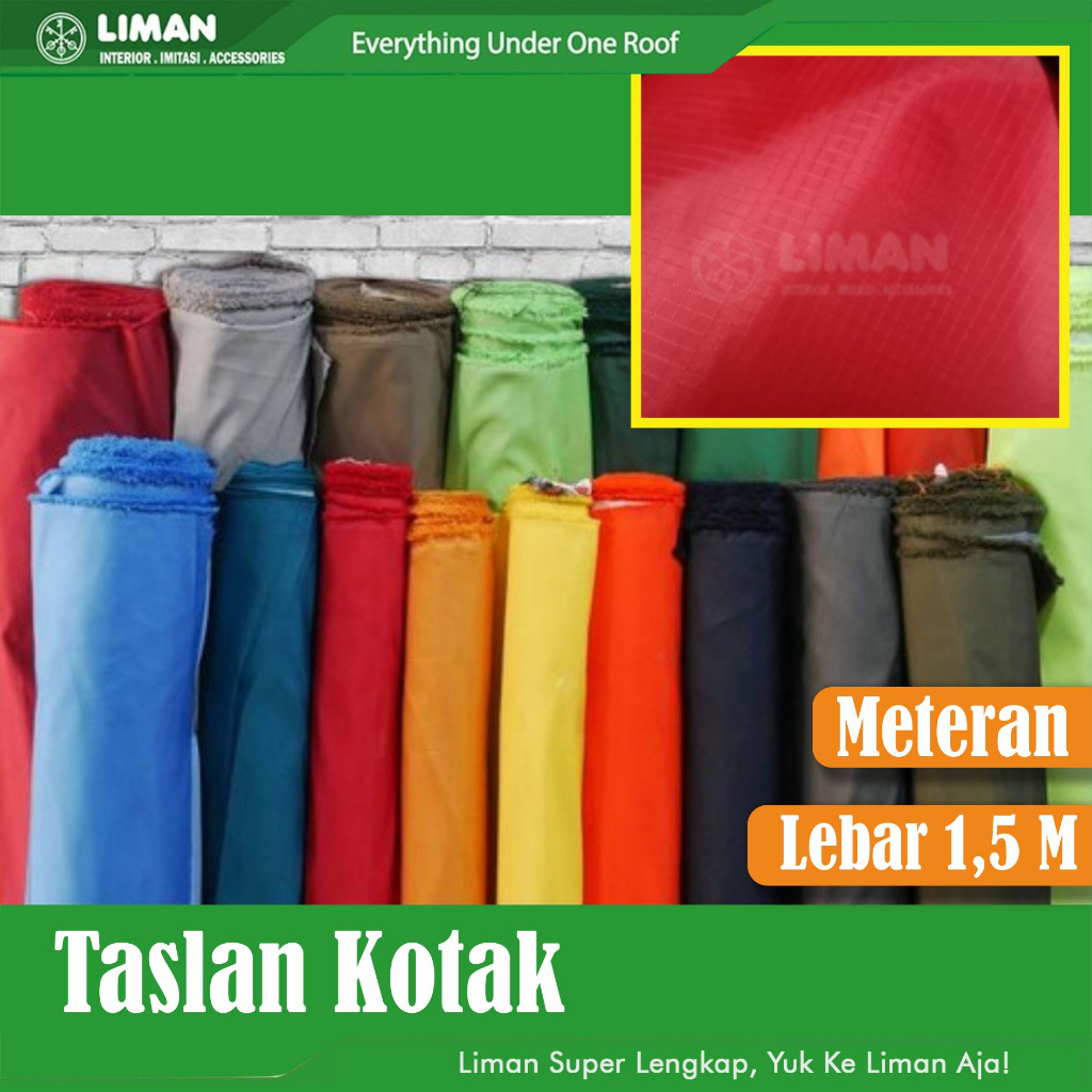 🚩Kegunaan : Kain Taslan Kotak ini memiliki keunggulan bahan tahan dan tidak tembus air. Selain itu Parasit Waterproof memiliki kelebihan bahan ini cocok digunakan untuk outdoor karena tahan terhadap air. Parasit ini biasanya digunakan untuk cover mobil dan motor, tenda camping, payung, lapisan tas, baju nelayan, dll.