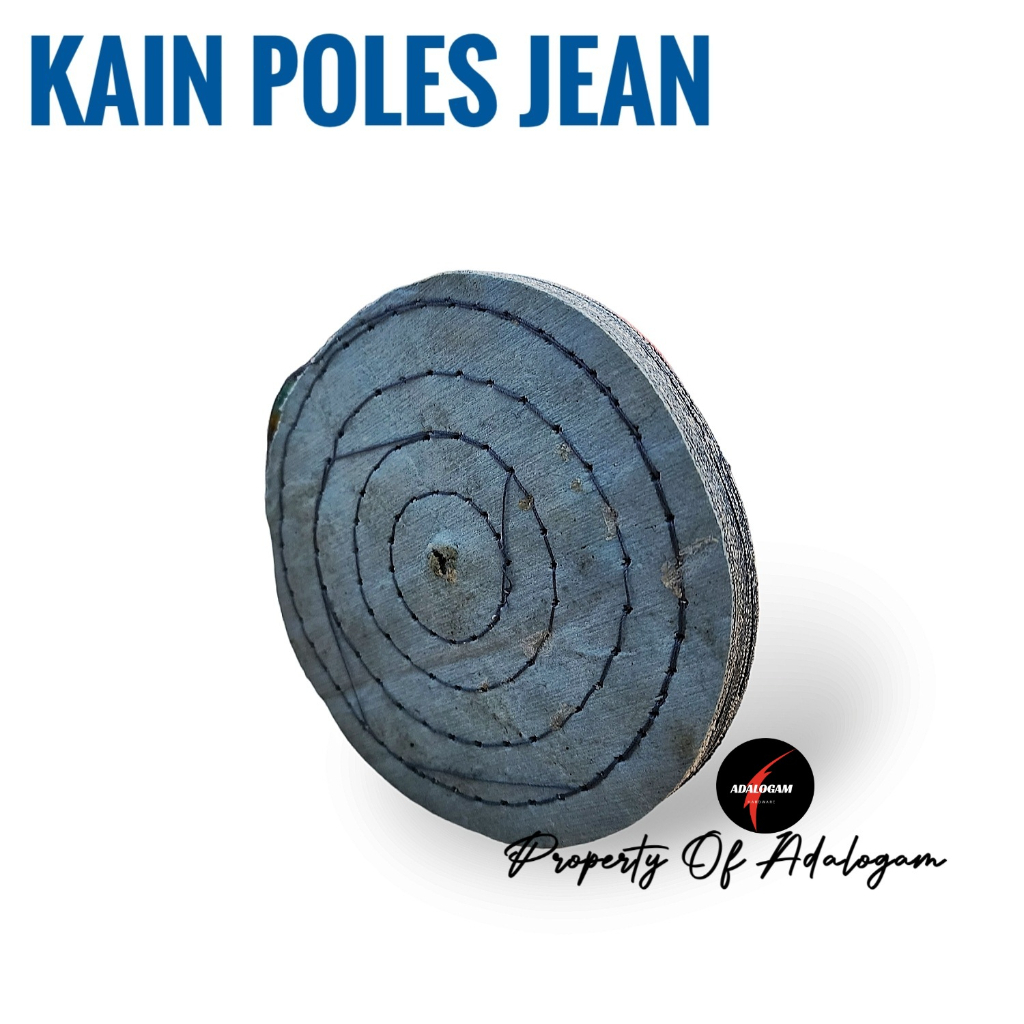 Kain Poles Jeans merupakan alat poles yang biasa di padukan dengan compound/ Batu Ijo / Langsol untuk memberikan hasil yang mengkilap pada benda kerja Terutama Stainless Steel, aluminium, Besi dan Bahan lainnya.