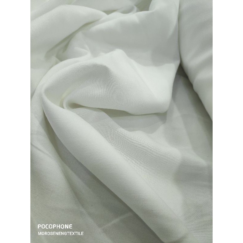 Kain katun rayon twill super lembut dan lebi tebal dari pasaran. Tersedia dalam 11 warna termasuk putih tulang.