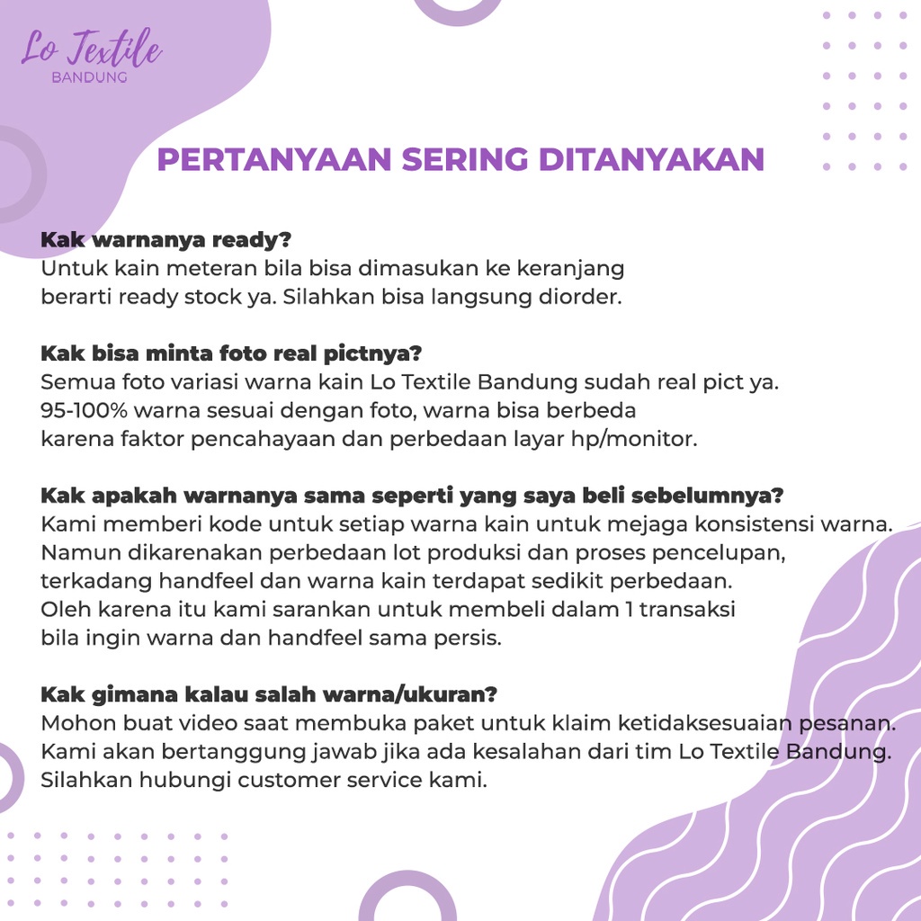 Mengapa harus beli di Lo Textile Bandung : - Penyedia kain terpercaya dan berpengalaman - Kualitas kain premium terbaik - Customer service kami selalu siap membantu - Bergaransi - Harga bersahabat