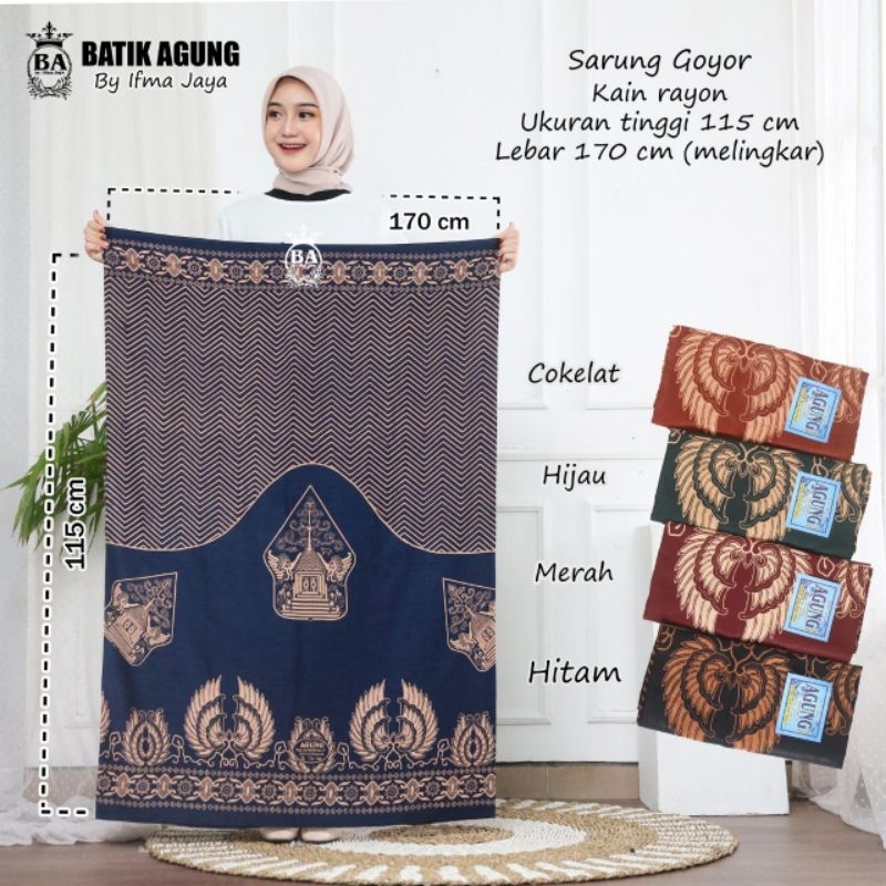 SPESIFIKASI UKURAN SARUNG (mozaikmerch) Tinggi Sarung : 115 cm Lingkar Sarung : 170 cm Berat : 250 gram (1kg = 5 sarung) Kemasan : Plastik
