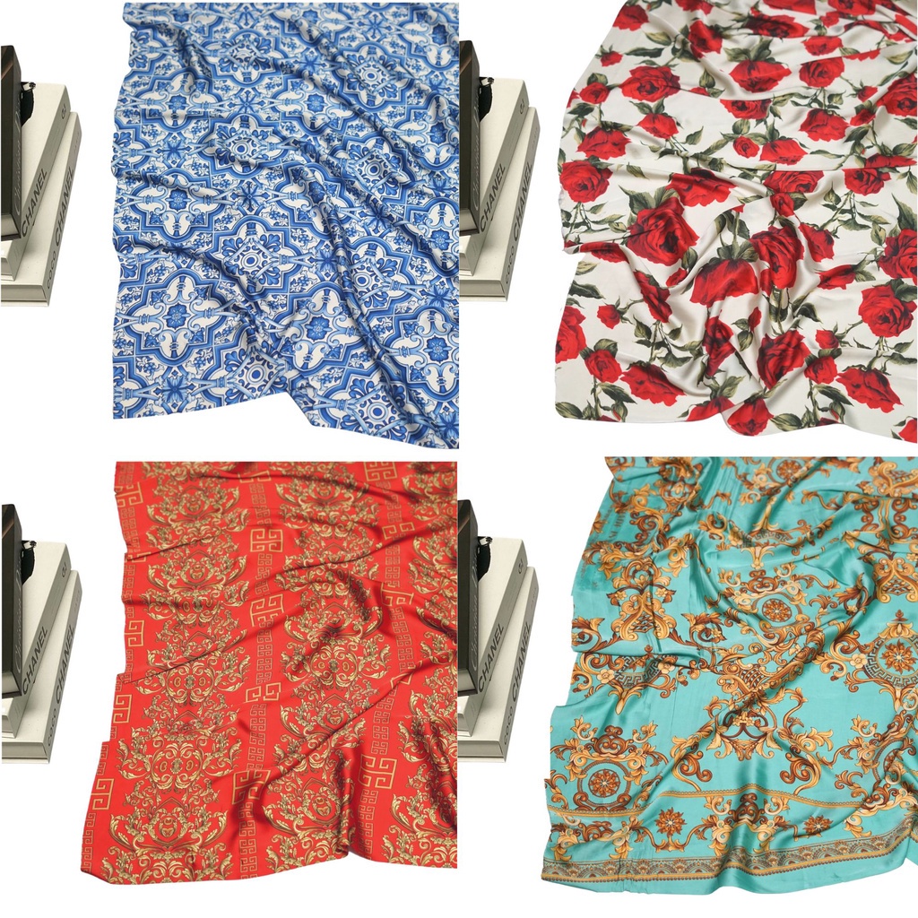 Kain Satin Silk Motif Bunga Lebar kain 1.5 m (All Ready stock)