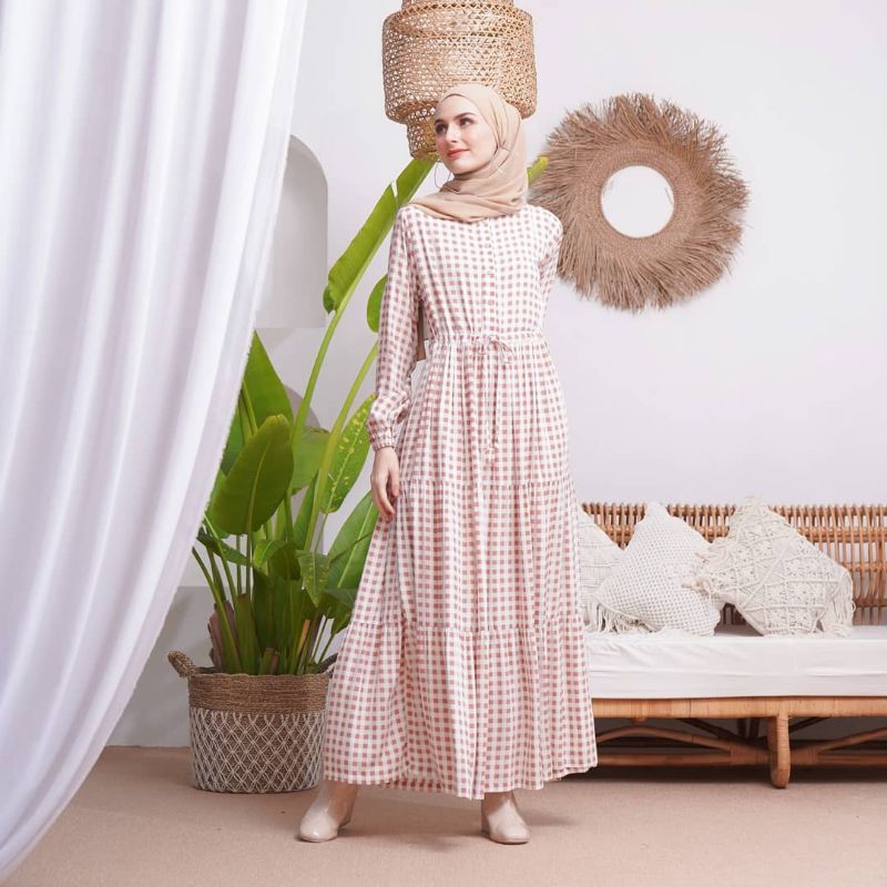Detail Kain Shakila Premium Motif Kotak kecil harga setengah meter