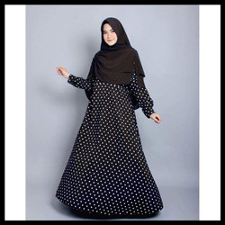 Karakteristik: lentur dan ringan. Ada textur timbul polkadot, terkesan mewah dan unik. Kainnya jatuh ketika dipakai,nerawang harus pakai furing Cocok untuk dijadikan atasan,gamis.rok, baju syar'i, pashmina, jilbab segiempat dll.