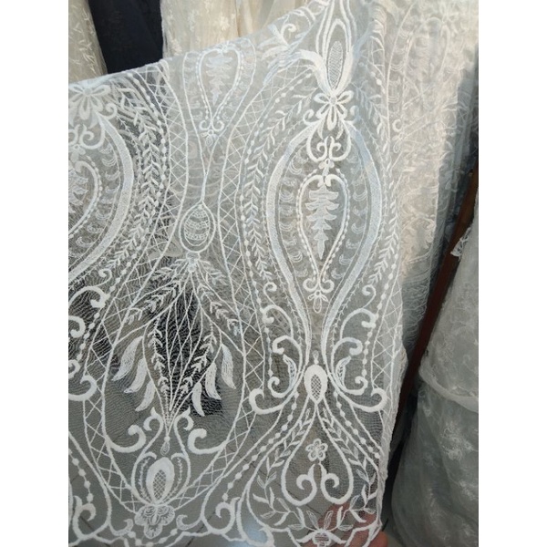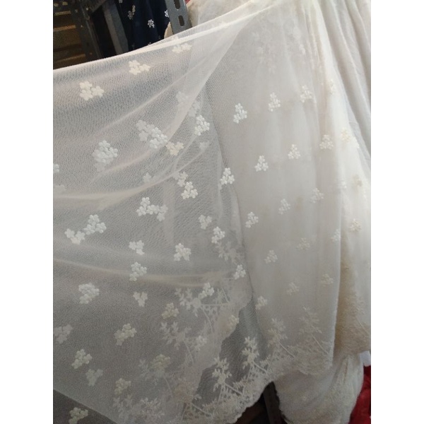 Jenis bahan : tille border krem Lebar : 1.30 cm Tekstur : โ Kain sedikit kakuโ bahan tembus pandang โ bahan import