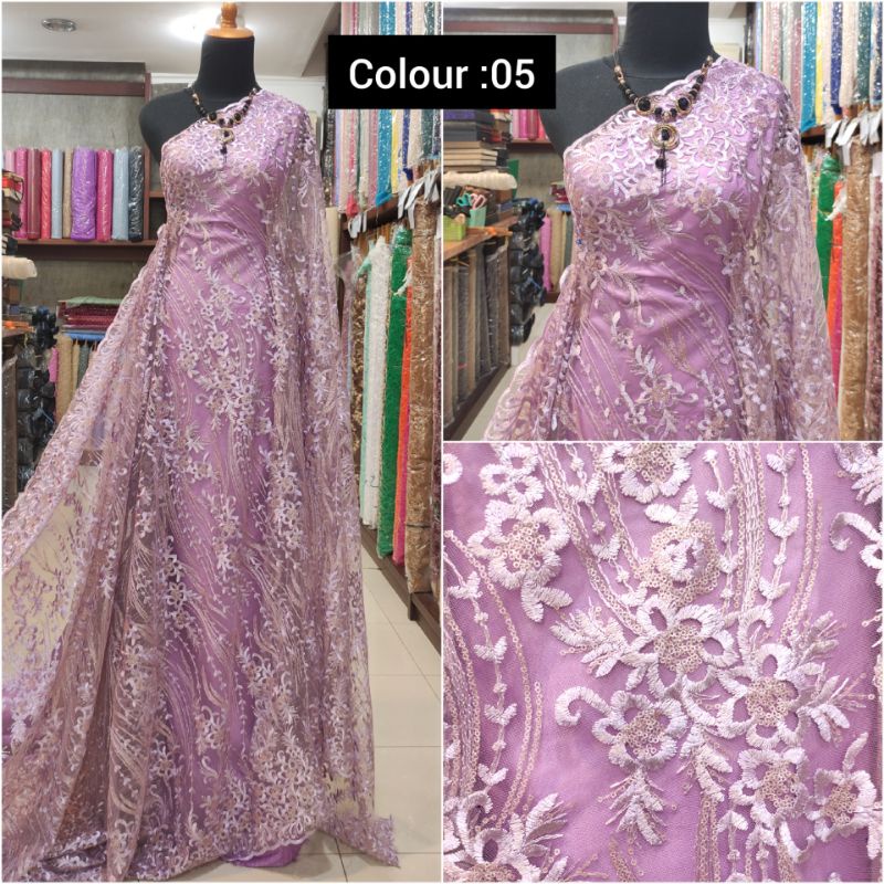 Detail Kain Tile Brokat Payet Bunga Salur SRK21693 Lilac 5