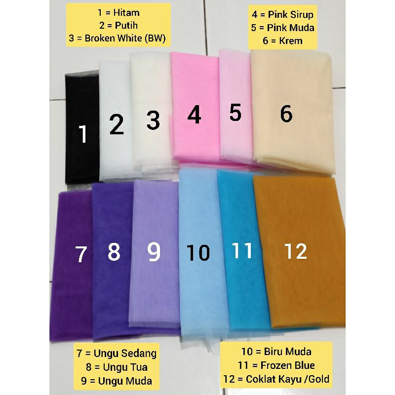 TEKSTUR KAIN : AGAK KAKU / KAKU SEDANG, karena untuk rok tutu yang ngembang, bikin dekorasi yang ada dimensinya, cocok untuk souvenir.