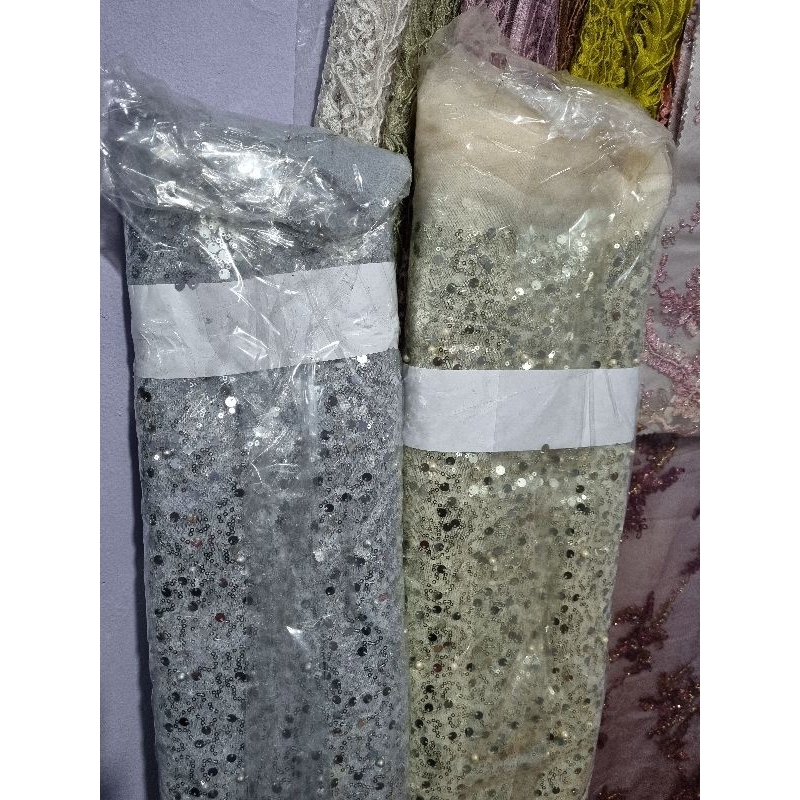 Pakaian Wanita > Kain > Kebaya > Kain Tile Payet Sequin / Bahan Tulle Sequin / Seribu Payet
