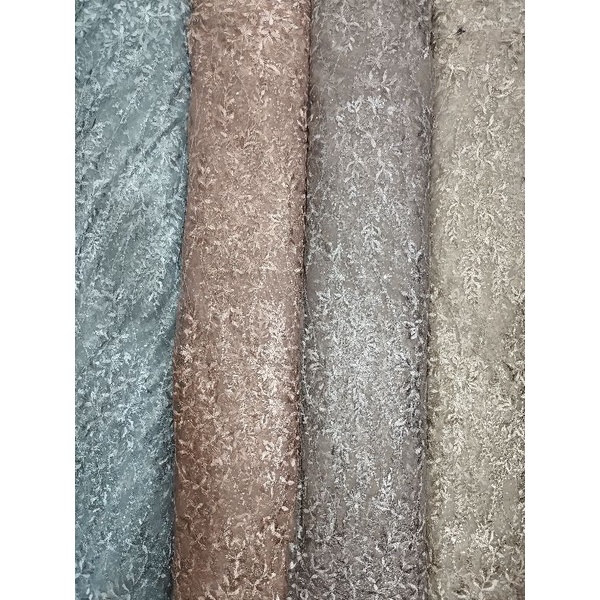 Kain Tille / Tulle /Tile Hollowgram Motif Bunga Sulur/Salur - Terbaru
