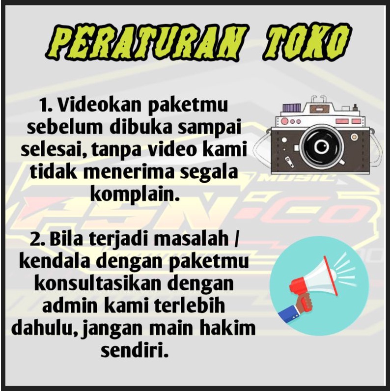 NB = 1. Segala bentuk komplain harus disertakan video unboxing/ pembukaan packing barang setelah diterima. 2. Kami tidak menerima segala macam bentuk komplain tanpa disertai video unboxing/ pembukaan packing.