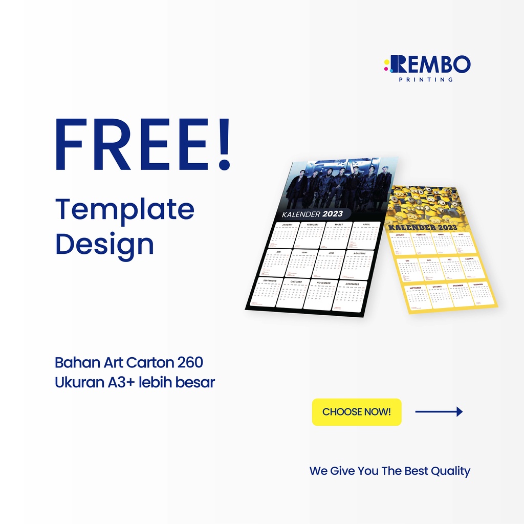 Kami menyediakan produk Kalender 2023 dengan pilihan variasi yang beragam dan menarik sesuai dengan selera dan kebutuhan anda. Mohon untuk di baca spesifikasi serta Cara Pemesanan yang tertera dibawah ini :