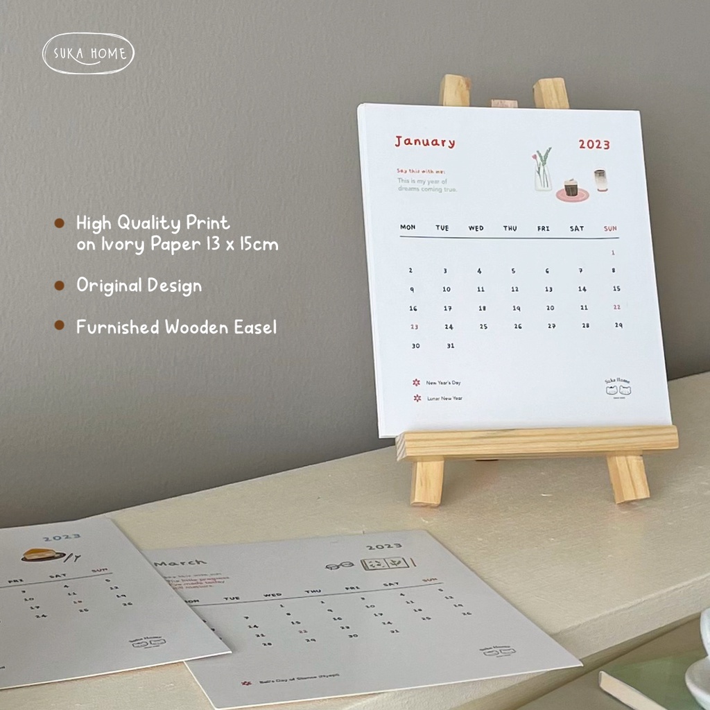 Buku & Alat Tulis > Perlengkapan Sekolah & Kantor > Kalender > Kalender 2023 Estetik | Kalender Meja Lucu | Kalender Woodstand | Calendar Aesthetic | Journaling Calendar Korean Style | Stand Calendar by Suka Home